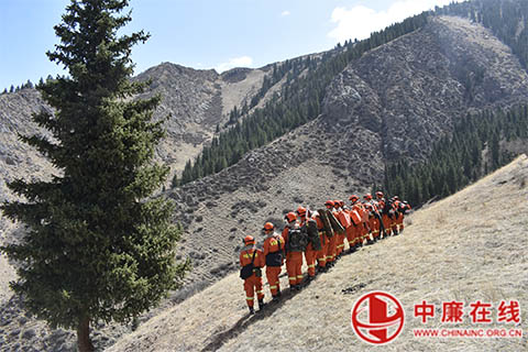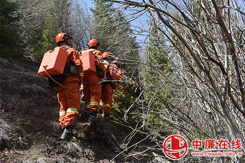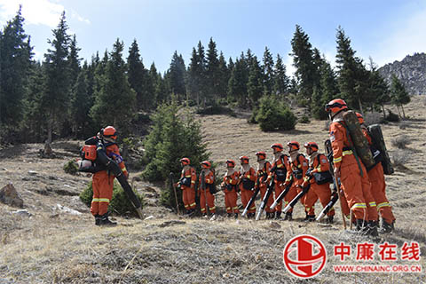 中廉在线5月7日讯:在祖国西北边陲的新疆巴伦台,有一群以山为伴的森林消防员,他们身着橘红色防火服,携带风机水枪……20余名森林消防员每天要走近20公里路,穿行在林内,确保林区森林生态安全。