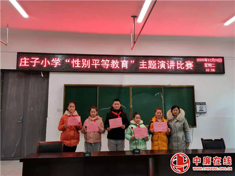 中廉在线12月18日讯:为进一步推动性别平等理念融入学生教育发展全过程,巩固性别平等教育开展成果,12月15日,安徽省蒙城县庄子小学举办了以“性别平等教育”为主题的演讲比赛。