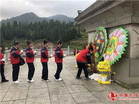 在烈士纪念碑前,党员教师代表向革命烈士敬献花篮,全体党员干部及学生向革命烈士默哀三分钟,充分表达了对革命烈士的无限怀念和敬仰之情。