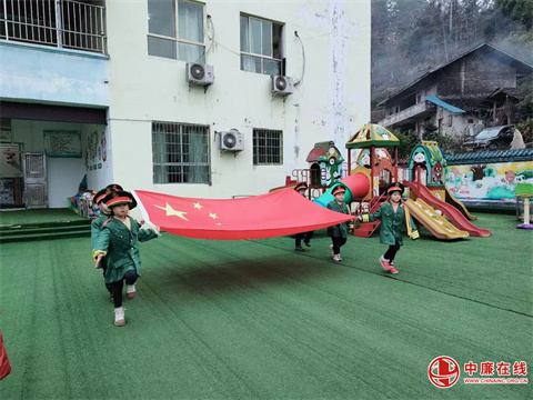 入园的钟声已经敲响,随着五星红旗随风飘起,3月7日的早晨,贵州省沿河县客田镇中心幼儿园迎来2022春季学期的第一周升旗仪式。