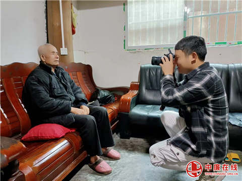 在老复员退役军人梁昌元家中,工作人员正在为他拍摄证件照,“感谢党和国家对我们的关心,我年纪大了,走不了路,有你们亲自上门服务,让我倍感温暖。”他高兴地说道。
