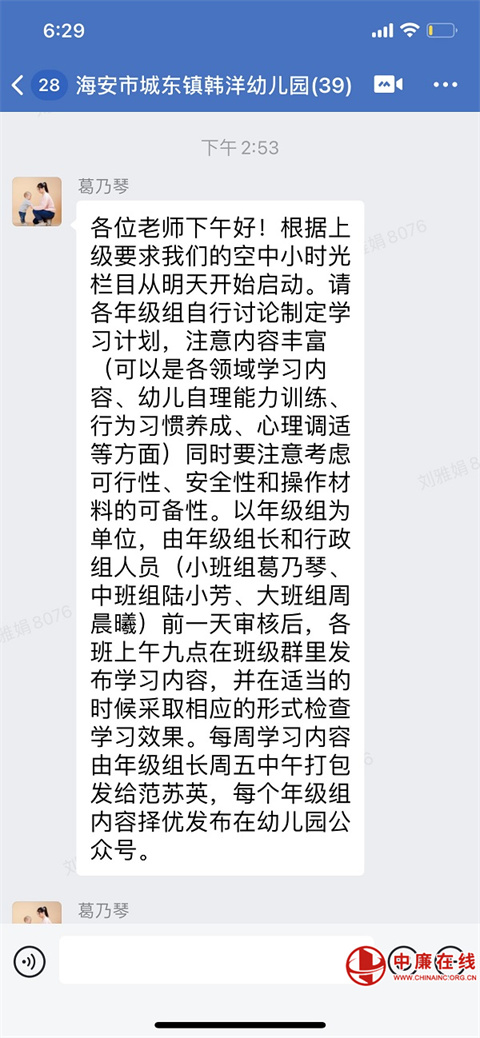 疫情忽至,快乐的幼儿园生活被迫按下了暂停键,城东镇韩洋幼儿园的教师们却初心未变,教研步伐未停。在抗疫的同时,教师们一直在思考着:应该给孩子怎样的游戏指导,才能让孩子的成长不间断。“疫”不容缓,为保证线上游戏指导的质量,提升游戏指导的效果,4月24日,江苏省海安市城东镇韩洋幼儿园的老师们汇聚“云”端共教研,开展各年级的疫情期间课程活动研讨工作,为这场战“疫”成功做好教学保障。