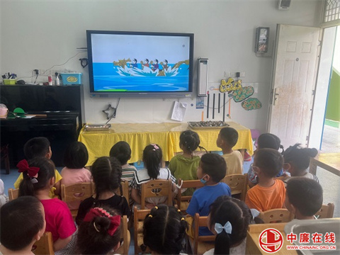 老师通过图片和视频给孩子们讲述了端午节的历史由来,介绍了端午节的有关习俗:赛龙舟、戴香包、品粽子等,让幼儿对端午节有了更深入的了解。