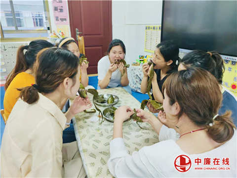 为了让全体教职员工感受中华传统节日的魅力和内涵,弘扬爱国主义精神,陶冶教职工情操,营造团结进取、奋发向上的精神氛围。幼儿园利用中午和放学后的时间,开展了教师群体过端午活动,活动在工会主席孙龙兰的主持中拉开序幕,园长朱燕向全体人员表达了节日的慰问与祝福,希望大家能热爱祖国,关爱家人,做一个心理健康,积极向上的好老师,开开心心过佳节。