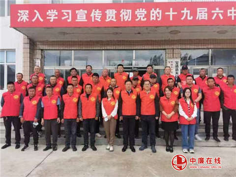 会议结束后,全体参会人员身穿印有夹信子镇新时文明实践志愿者标识红马甲,在镇政府门前举行农村人居环境村庄清洁行动启动仪式。(王双双 马吉成)