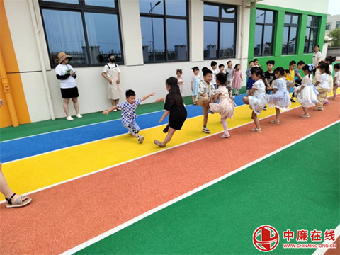 “老鹰捉小鸡”是一种以发展幼儿侧身跑和躲闪跑的能力为体能目标,通过互相合作的方式培养幼儿团体意识和责任意识的传统民间游戏,深受幼儿的喜欢。看,在小三班老师的带领下,老鹰和鸡妈妈激烈的周旋,鸡宝宝们屏气观察,忽左忽右紧随鸡妈妈身后,整个活动既紧张又刺激,操场上不断传出阵阵欢声笑语。