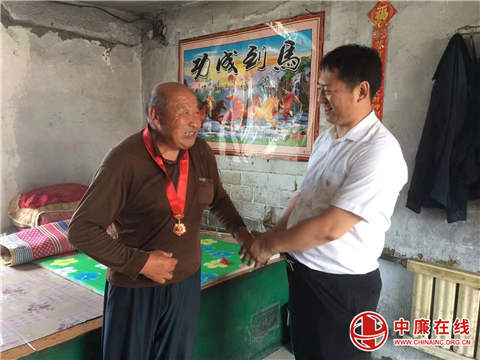 党课结束后,赵升海看望有着50年党龄的老党员祝海川、姜志成,并给老人们呈上“光荣在党50年纪念章”和慰问品,并叮嘱其保重身体,希望老党员能一如既往为党的事业发光发热。