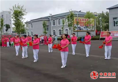 县人武部官兵高举“军民鱼水情谊深,双拥共建花儿红”的横幅迎接小城子镇代表团的到来。代表团的演员们身着色彩艳丽的服装,伴随着欢快的节奏,有序的变化着队形,动作整齐划一,舞姿欢快轻盈,为在场的官兵献上了精彩的表演。