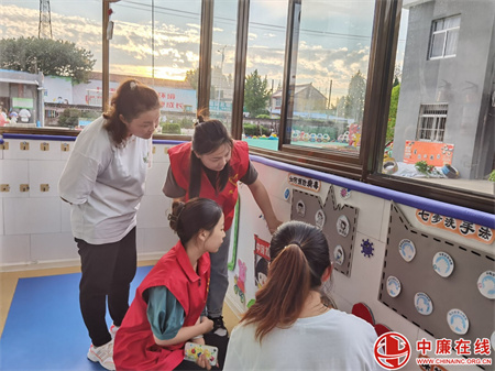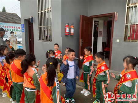 推普活动周,礼仪小天使身披红色绶带,在幼儿园门口向老师、小朋友和家长打招呼,营造人人都讲普通话的浓厚交流氛围。