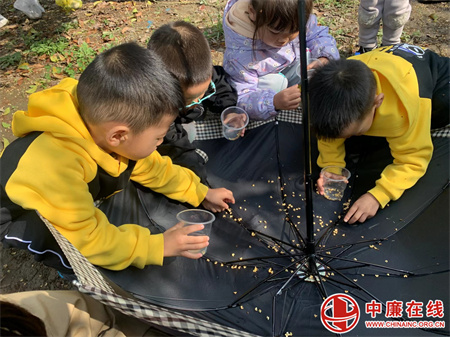循着花香,孩子们小小的身影穿梭在幼儿园的小树林,寻找着飘香的桂花树。一阵秋风吹来,香气扑鼻。在微风中,桂花飘落下来,落到孩子们的头发上、脸上、手上,落到衣服上,钻进领口里,引来孩子们一片银铃般的笑声,孩子们用小手轻轻地拾起,将秋天的美丽珍藏。