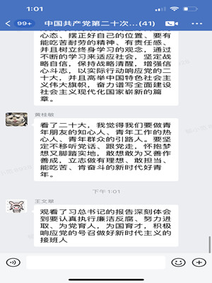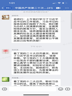 大家纷纷表示,一定要认真学习、贯彻、落实党的二十大精神,以更加高昂的工作热情和干劲献身人民的教育事业,为推动教育事业的发展而努力奋斗。