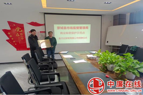 为了制止侵犯商业秘密的行为,完善企业商业秘密保护体系,蒙城县市场监督管理局积极开展商业秘密保护示范点创建活动,并授予金元达制笔有限公司商业秘密保护示范点。