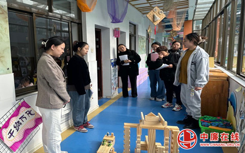 园长朱燕和老师们一起带着欣赏与学习的态度走进每个班级。为了更好的展示各班的风貌,每班由一名教师担任讲解员,热情细致、如数家珍地向大家介绍自己班级游戏区域的创设理念、材料投放的意义以及班本活动开展的情况等。观摩的老师认真聆听,用发现的眼光去寻找区域中的亮点,大家切实感受到:主题墙、各区角、走廊等的小图标、小标志、小设计,无不凸显着孩子们的成长足迹。