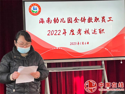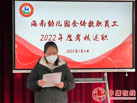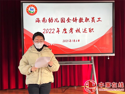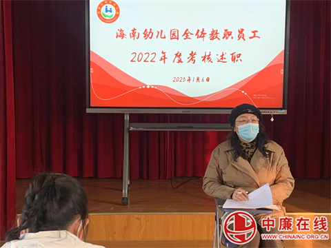 时序更替,华章日新。为全面、客观、公证、准确的评价教职工整体业务水平、充分调动和激发全体教职工爱岗敬业、自觉奉献的积极性和主动性,不断提高教职工业务水平和履行岗位职责的能力,优化部门职能,推动各项工作顺利进行,2023年1月6日下午,江苏省海安市高新区海南幼儿园召开全体教职员工2022年度公开述职测评会议。