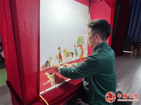 一张幕布,几根竹棍、几张皮影,唱念做打,在一演一观的两个世界共同感受生活与传说,这就是皮影戏的真实写照。为发扬国潮文化,共赏非遗经典,2023年4月6日,海安市文化艺术中心志愿者陈峰老师带着皮影戏《悟空戏八戒》走入海南幼儿园。