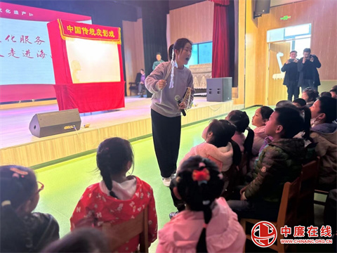 报告厅的舞台上,灯光穿透白色幕布,一个个经典的形象活灵活现地出现在孩子们面前。伴随着音乐的响起,在皮影戏“演员们”娴熟的操作中栩栩如生、惟妙惟肖地展现开来。孩子们目不转睛地看着舞动的皮影,不愿错过每一个精彩的情节,置身于跌宕起伏的故事情景之中,时而紧张,时而欢呼,时而惊叹,时而大笑。