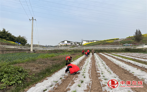 图为向义镇水口村退役军人志愿服务队队长刘念组织村级志愿者到田间开展菜苗育培志愿活动。