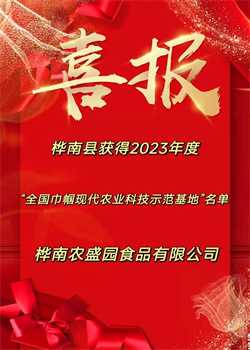 近日,全国妇联办公厅发布《关于命名2023年度“全国巾帼现代农业科技示范基地”的通知》(妇厅字〔2023〕27号),公布了2023年度“全国巾帼现代农业科技示范基地”评选结果。黑龙江省桦南农盛园食品有限公司获评“全国巾帼现代农业科技示范基地”,是佳木斯市唯一获此荣誉的单位。