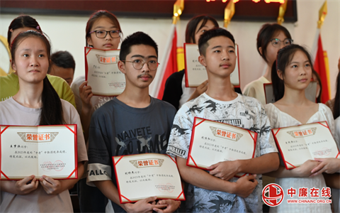 8月16日,在四川省内江市东兴区石子镇2023年度中、高考优秀学生表扬活动现场,56名品学兼优的中高考学生喜领政府发放的奖学金。