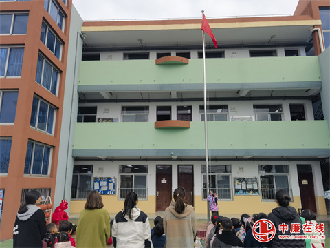 小小国旗手随着进行曲步履铿锵、大步向前,庄严而神圣的升旗仪式开始了。伴着《义勇军进行曲》,小朋友们行注目礼,目不转睛地看着鲜艳的五星红旗徐徐升起!