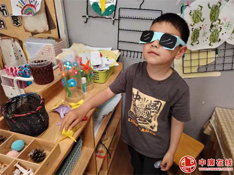 随着孩子们接触电子设备的机会和时间增多,眼睛的负担越来越重,孩子们常常感到眼睛疲劳、干涩,甚至视力下降。各班教师通过生动形象的图片、视频等形式,让幼儿深入了解眼睛的结构,帮助幼儿掌握爱护眼睛、预防近视的方法。孩子们亲手制作眼镜,体验眼镜给生活带来的不便,在实践中感知保护好眼睛的重要性。