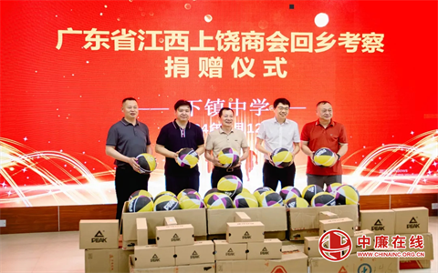 会前,广东省江西上饶商会一行到下镇中学捐赠一批体育用品,并参观下镇中学校史馆、博士园和智慧下镇平台。(饶商联合总会)