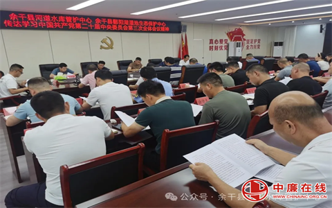 7月24日,江西省上饶市余干县河道水库管护中心召开专题会议,传达学习党的二十届三中全会精神和省委、市委、县委(扩大)会议精神。班子成员、中层干部和机关党员参加会议。
