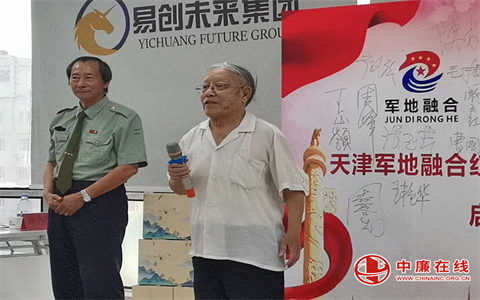 军地融合研究院毛振刚院长、易创孵化器楼宇商会会长王全有会长为“天津军地融合红色文化艺术交流中心”揭牌