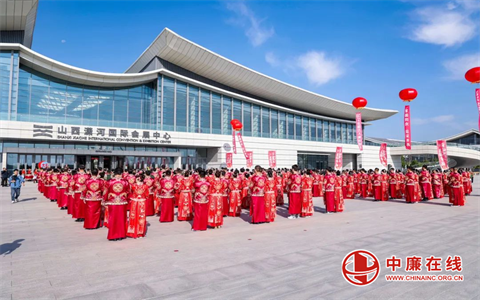 现场布置浸透着山西传统文化底蕴,晋商大院门槛、窗棂等建筑元素巧妙融入婚礼现场设计,新人站位勾画出“囍”造型,国家级非物质文化遗产鼓乐表演奏响了婚礼迎宾曲。现场鲜花锦簇,人人喜笑颜开,处处洋溢着喜庆气氛。