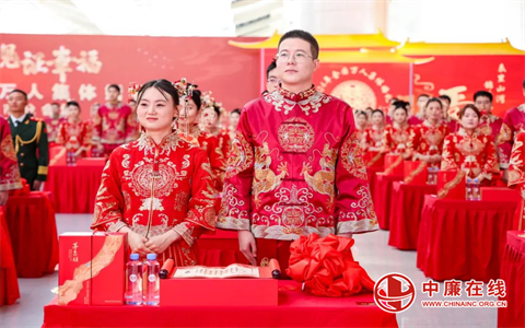 此外,活动还安排了嘉宾向新人赠送婚书、全国道德模范、全国文明家庭代表送祝福,新人集体宣誓等环节,整场婚礼庄重又不失浪漫。最后,全体新人和嘉宾共唱《我和我的祖国》,将活动推向了高潮,集体婚礼圆满成功。这一刻,千万家庭共庆新中国华诞,祖国见证每一个家庭幸福时刻。