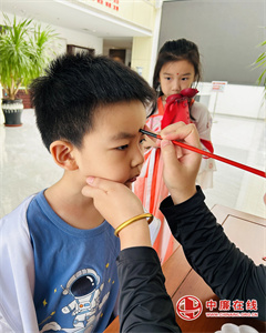 随后,在“额间画王驱邪”环节,老师们用雄黄在孩子们的额头、双手上画一个王字,为孩子们留下童年端午的美好记忆。“系五彩绳纳福"环节,老师们为每个孩子分发五彩绳,将五彩花线轻轻地系在孩子的手腕。红黄蓝白黑,五色丝线并为一绳,为端午增添不一样的色彩。"扭制粽子挂件"环节:孩子们充分发挥创意和想象力,用扭扭棒编织出各种粽子造型。在实践中感受到了传统节日的魅力,加深了对端午文化的理解与传承。活动最后,讲解员还带领孩子们参馆了墨砚馆,了解砚台历史发展脉络。让孩子们更加深入地了解了砚台文化的深刻内涵及其当代价值,营造了浓厚的文化氛围。