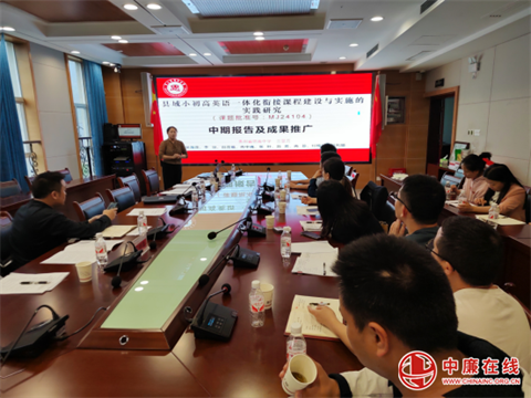 第二部分,兰显芳做了题为“省级民族专项课题《县城小初高英语一体化衔接课程建设与实施的实践研究》中期检查报告及成果推广应用”的推广应用研究展示活动报告,讲了问题的提出、目前取得的研究成果及推广应用情况等。
