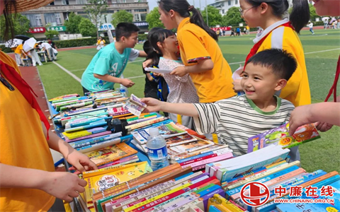 骄阳暖五月,阅读正当时。为落实 “双减”政策,进一步推进书香校园建设,营造浓郁的读书氛围,培养学生爱读书、读好书、善读书的阅读习惯,5月10日下午,江西省上饶市玉山县明德小学举行第七届读书节系列活动之“跳蚤书市”义卖活动。