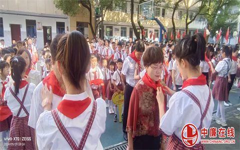 接着,少先队大队总辅导员徐萍宣读了新建中队的决定,并宣布了新队员名单。在激动人心的时刻,老队员们为新队员们佩戴上了鲜艳的红领巾,新队员们脸上洋溢着自豪和喜悦的笑容。