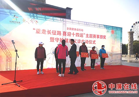 10月31日上午10时,全民健身云行动“重走长征路 喜迎十四运”主题赛事活动颁奖暨守护健康义诊活动在陕西省咸阳市统一广场隆重举行。
