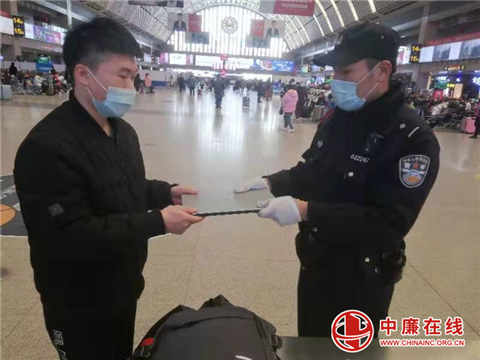 经过10余分钟工作,在候车室B18检票口附近找到发现该名旅客的包,并在该旅客上车之前及时将物品归还,民警积极主动行为,为旅客挽回经济损失,旅客对民警认真的工作态度及严谨的工作作风表示了赞赏和肯定,对民警十分感谢。(刘峰)
