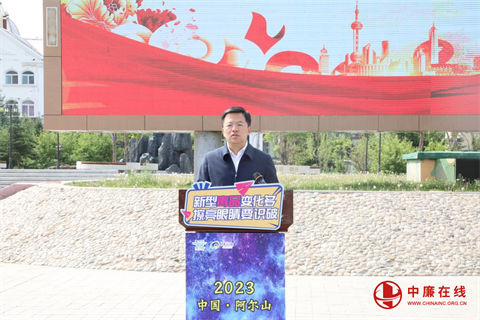 阿尔山市禁毒委员会常务副主任、政府副市长、公安局长赵喜玖宣读禁毒倡议书。