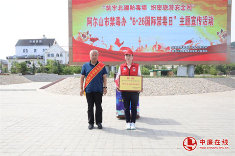 兴安盟禁毒委员会副主任、禁毒办主任、盟公安局党委委员、副局长刘延平同志向雪城义警颁发奖匾证书,并由雪城义警代表孙小丽同志发言。