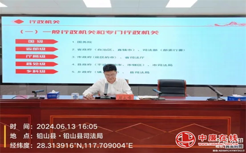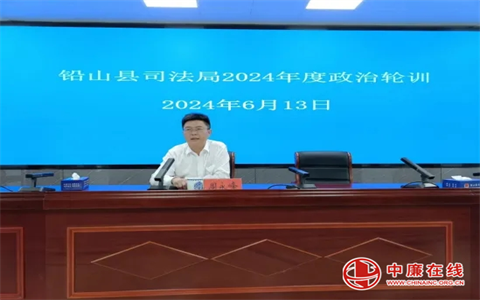 为深入学习习近平新时代中国特色社会主义思想、习近平法治思想、《中国共产党纪律处分条例》《中国共产党政法政法工作条例》《江西省政法工作条例实施细则》及各项法律业务知识,进一步提升干部的政治素养、理论修养和业务水平,推动司法政法工作高质量发展,6月13日,江西省上饶市铅山县司法局2024年度政治轮训培训班开班。县司法局党组书记、局长周永峰出席开班式并讲授专题党课,政工室主任杨波主持开班仪式,县司法局全体在编在岗人员、全体辅助工作人员参加此次轮训。