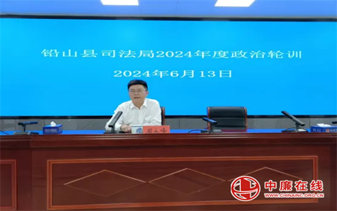 为深入学习习近平新时代中国特色社会主义思想、习近平法治思想、《中国共产党纪律处分条例》《中国共产党政法工作条例》《江西省政法工作条例实施细则》及各项法律业务知识,进一步提升干部的政治素养、理论修养和业务水平,推动司法行政工作高质量发展,6月13日,江西省上饶市铅山县司法局2024年度政治轮训培训班开班。县司法局党组书记、局长周永峰出席开班式并讲授专题党课,政工室主任杨波主持开班仪式,县司法局全体在编在岗人员、全体辅助工作人员参加此次轮训。