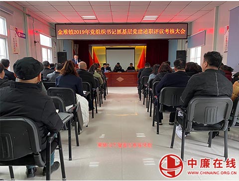中廉在线1月22日讯:1月21日,陕西省金堆镇召开2019年度党组织书记抓党建述职评议考核大会,镇机关干部、各党支部书记、第一书记和两代表一委员60余人参会。