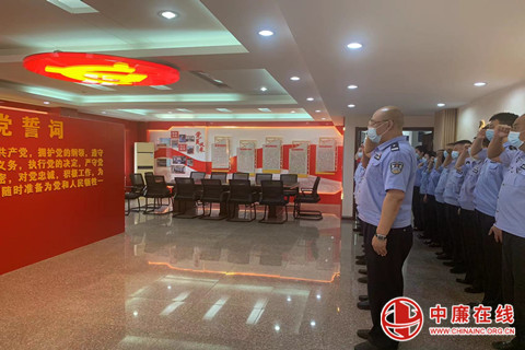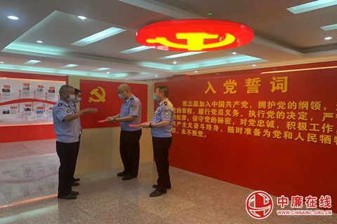活动中,苏家屯站派出所党支书记孙威、副书记孙英奇分别向2名过政治生日的党员同志赠送了“政治生日”贺卡,希望党员们在工作中敢于亮身份、显担当,充分发挥党员的先锋模范作用。随后,全体党员面向党旗庄严宣誓,重温入党誓词。