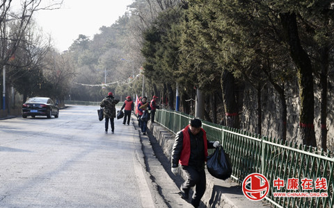 矿区家属楼后山是干职工日常健身休闲的主要去处。第二小组20余人在大队长的带领下,高举着“党员先锋队”鲜红队旗,沿着盘山小道而上,路边饮料瓶、塑料袋等任何一点杂物都被他们捡起带走。一时间,整个山坡被志愿者鲜红的马甲、帽子点缀得煞是好看,给冬日的矿山天上一道风景。