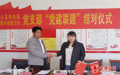 在村部会议室,曹淼峰与湖里王村党支部书记潘春伟共同签订了“党建联建”协议书,鲁山县教体局党组与湖里王村党支部建立了“党建联建”结对关系。