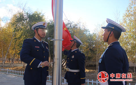 为热烈庆祝新中国成立73周年,进一步深化党史学习教育成效,激发消防救援人员爱国奉献、履职尽责的荣誉感、责任感和使命感,增强热爱祖国、忠诚于党、献身消防事业的坚定信心和决心,10月1日上午,新疆阿勒泰地区森林消防支队大桥林场驻防分队隆重举行升旗仪式。