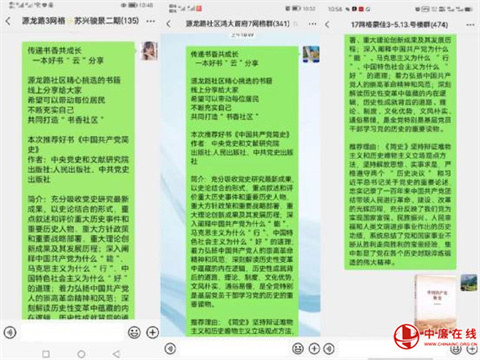 传递书香共成长,一本好书“云”分享。为大力倡导“多读书、读好书、好读书”的文明风尚,营造全民读书终身学习的良好社会氛围,源龙路社区开展“一本好书“云”分享”线上好书推荐活动,通过网格员在居民微信群线上推荐形式,向党员群众推荐《中国共产党简史》《习近平新时代中国特色社会主义思想专题摘编》《鎏金岁月——兴安盟红色故事汇》等图书,通过线上好书分享活动,在社区内营造了浓厚的线上读书氛围,掀起了“爱读书、读好书、善读书”的文明风尚,进一步提升了社区文化服务水平。