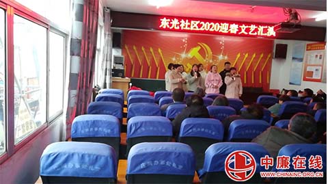 中廉在线1月9日讯:2020年1月8日下午,天气寒冷,而安徽省蒙城县庄周街道东光社区礼堂内却暖意融融,原来由社区扶贫专干柳芸平、社区干部陈春梅、陈安礼及全体扶贫小组长自编自演的“坚定脱贫信心,共筑美丽东光”为主题的“村晚”献给贫困群众的文艺演出共在如火如荼的进行中。