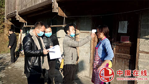 入户排查登记和测量体温务工返乡人员