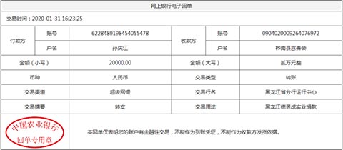 县政协常委、黑龙江德昱成实业有限公司总经理吴成威捐款20000元;黑龙江恒源食品股份有限公司捐款20000元、医用一次性口罩5000个;桦南县宏安粮油贸易有限公司捐款20000元等,凝聚强大社会合力,支援疫情防控阻击战。