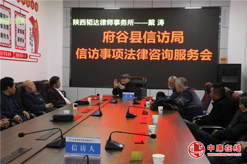 开展法律咨询服务活动。为引导诉访分离、落实法律援助,府谷县信访局协调县司法局调配专业律师和相关工作人员进驻信访接待大厅,设置12348法律热线、文书代写、法律咨询、法律援助和综合接待等5个窗口,为群众提供诉前、诉中、诉后的法律服务。向信访群众宣传法治理念、普及法律知识,增强学法尊法守法用法观念,引导其依法有序信访,用法律武器维护自身合法权益。